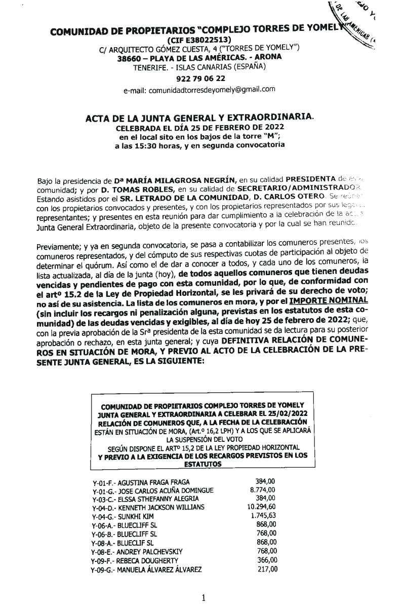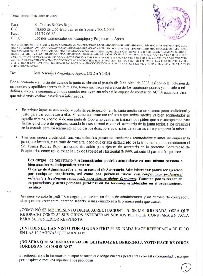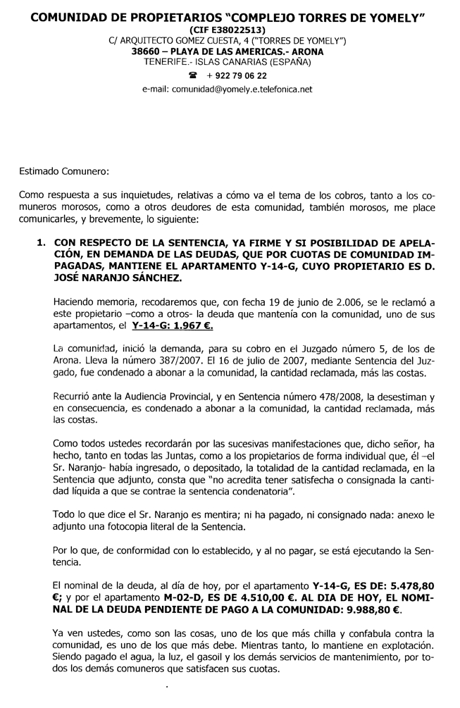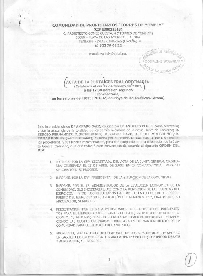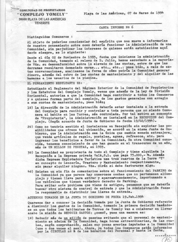 Si usted es poseedor de alguna de las actas, convocatorias u otros documentos no disponibles en este hosting relacionados con este Complejo , y pudiera aportármela, colaborará con ello y en privado para que la comunidad que nos pertenece sea de todos. Para cualquier duda o información comunique con nosotros.