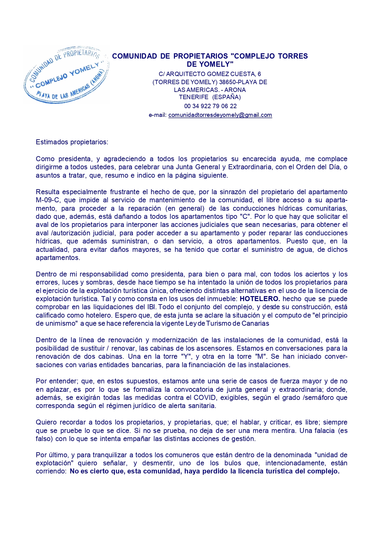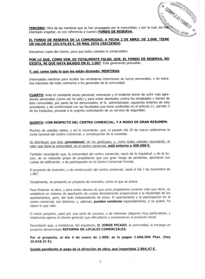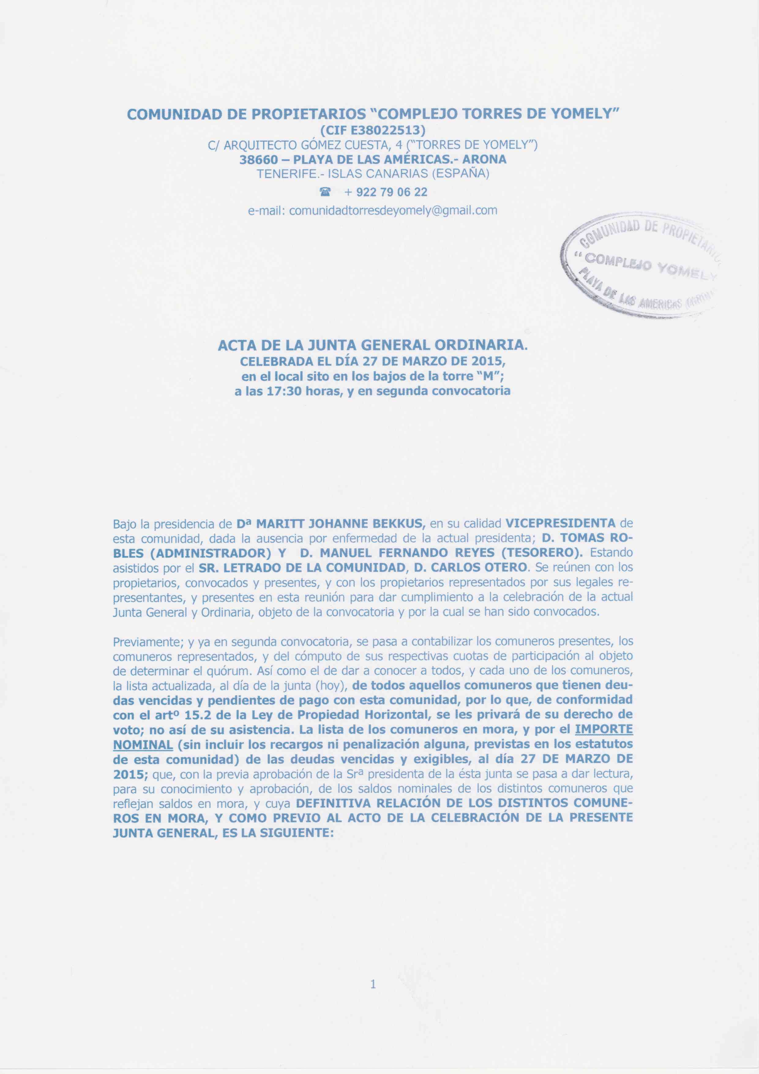 Si usted es poseedor de alguna de las actas, convocatorias u otros documentos no disponibles en este hosting relacionados con este Complejo , y pudiera aportármela, colaborará con ello y en privado para que la comunidad que nos pertenece sea de todos. Para cualquier duda o información comunique con nosotros.