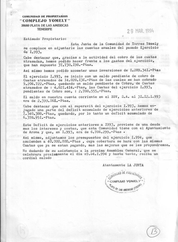 Si usted es poseedor de alguna de las actas, convocatorias u otros documentos no disponibles en este hosting relacionados con este Complejo , y pudiera aportármela, colaborará con ello y en privado para que la comunidad que nos pertenece sea de todos. Para cualquier duda o información comunique con nosotros.